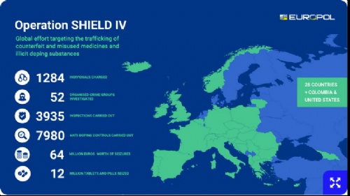 Operation SHIELD IV was led by law enforcement and other authorities in 30 countries and supported by the European Anti-Fraud Office (OLAF), EUIPO, Frontex, the World Anti-Doping Agency (WADA) and national medicine agencies.